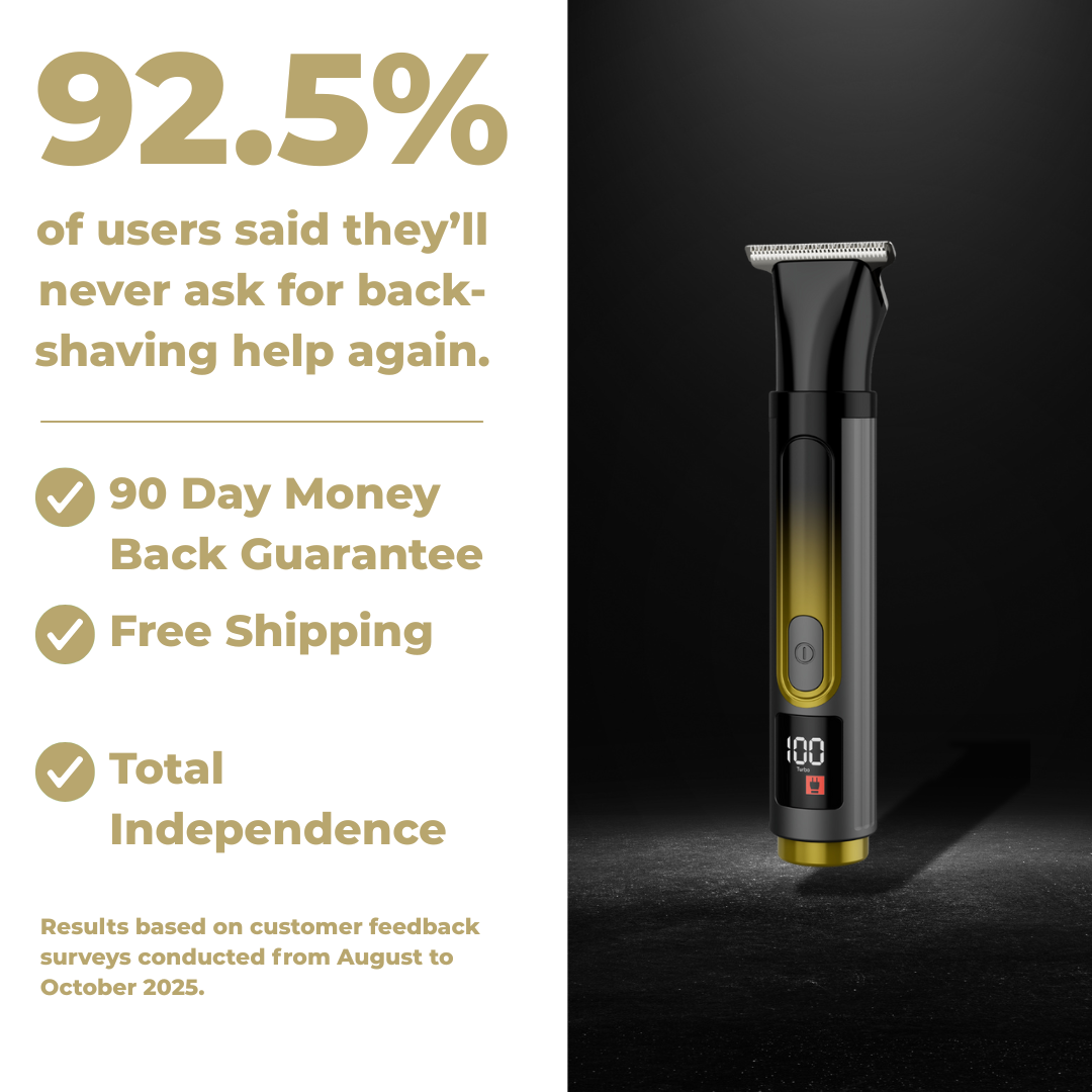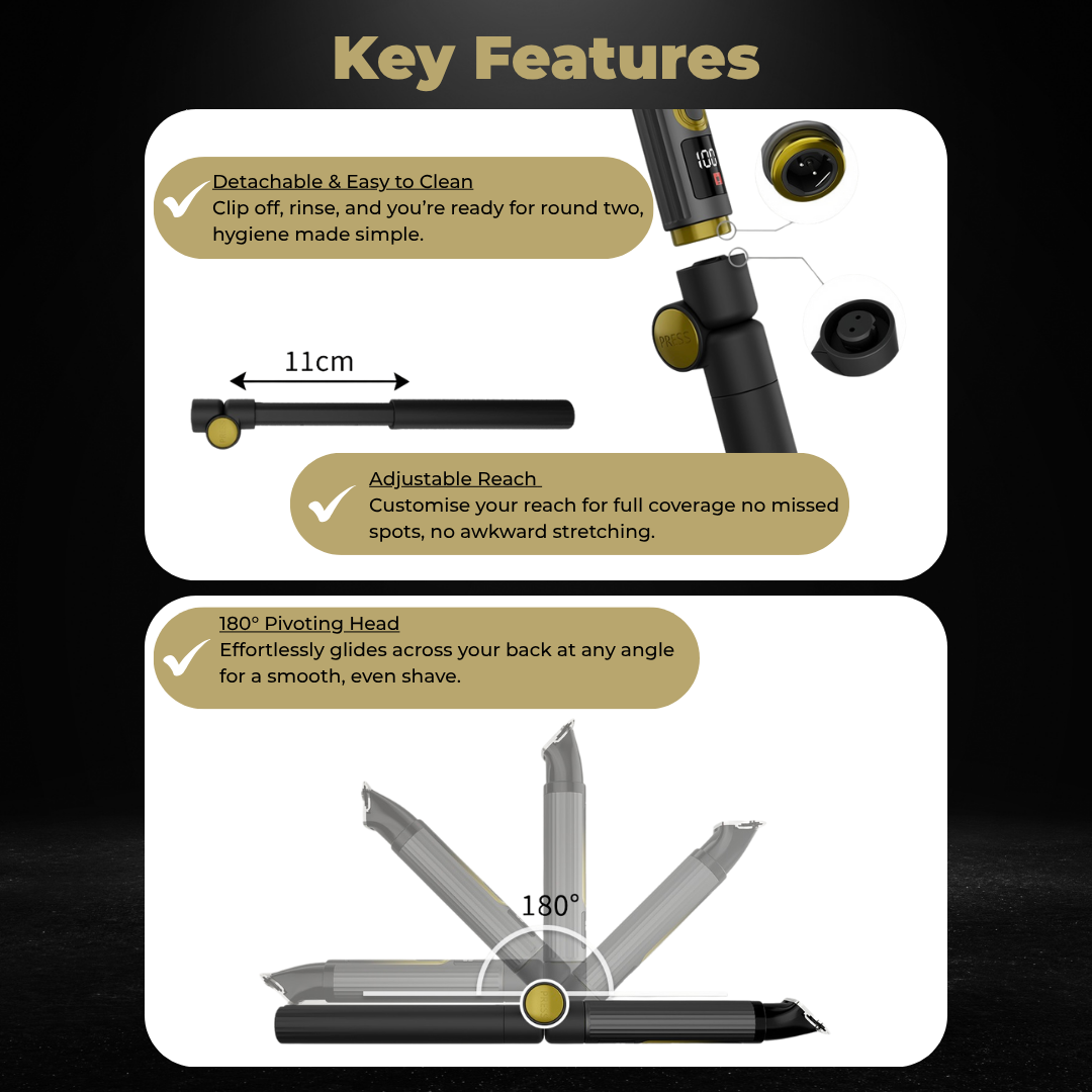 The Wingman™ is your all-body grooming essential, designed for back, chest, arms, and more. Foldable, extendable, and waterproof — built so you can groom every inch with total control.